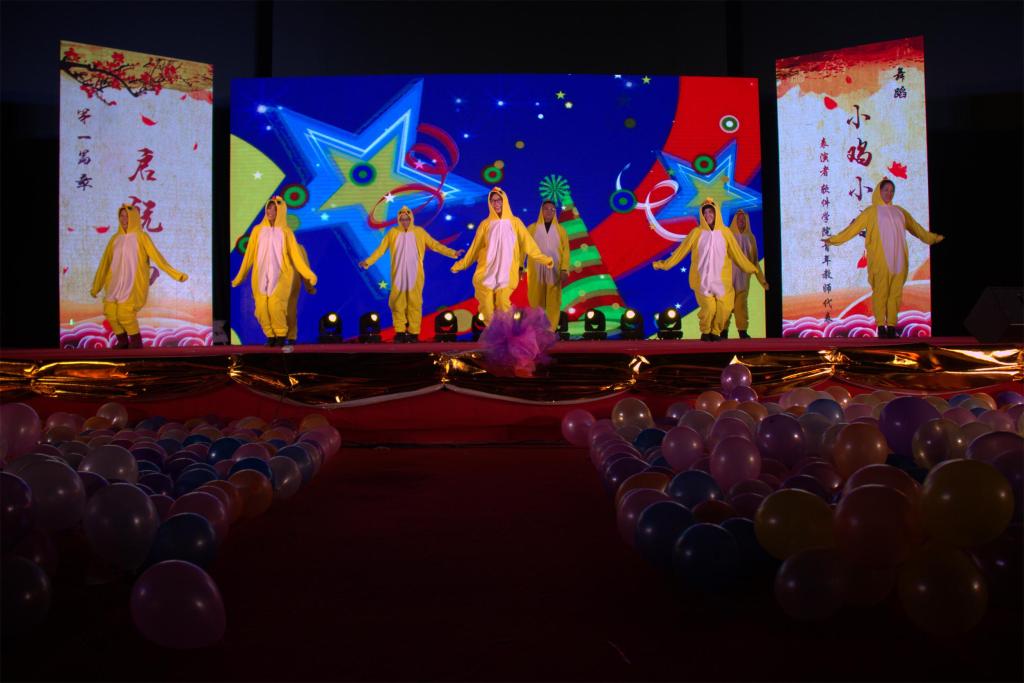 本次元旦晚会分为启航、逐梦、希望三个篇章,包括乐器类、语言类与歌舞类等在内的15个节目,并设置了抽奖环节。独具创意的音乐电台、别有韵味的民舞表演、令人啼笑皆非的小品,还有留学生朋友的特色节目,青年教师代表的呆萌舞蹈将晚会一次次推向高潮。最后晚会在温馨的合唱氛围中圆满落幕。
