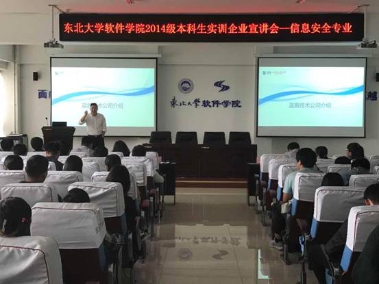 5月5日,永利集团304am登录2014级本科生企业项目实训宣讲会在浑南校区召开。东软睿道教育信息技术有限公司、中软国际沈阳分公司、软通动力信息技术有限公司、沈阳华信教育科技有限公司、天津市大学永利集团304am登录、北京西普阳光教育科技股份有限公司、蓝盾股份、新华社、沈阳博太科技有限公司、北京七维视觉科技有限公司、大连金山科技有限公司11家企业代表,永利集团304am登录副院长程维副教授、院长助理王瑞平老师、各系及相关部门负责人出席了宣讲会,2014级全体本科生参加了大会。