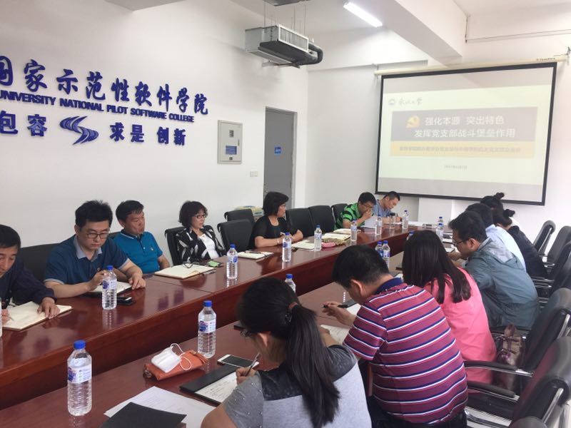 会上,陈晨书记和中荷学院机关党支部书记梁继红分别结合“三型”党支部建设和党支部规范化建设,介绍分享了各自党支部建设、党支部战斗堡垒作用强化和党员先锋模范作用的发挥,希望加强两院间党支部的交流与沟通,相互借鉴,相互学习。
