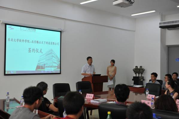 2017年7月11日在浑南校区信息学馆B座539举行了永利集团304am登录-北京腾云天下科技有限公司校企合作签约仪式暨北京腾云天下科技有限公司-张学良教育基金会捐赠仪式,张骁主持签约仪式,北京腾云天下科技有限公司总裁助理杨慧女士、首席数据科学家张夏天先生、永利集团304am登录对外联络与合作处李鹤处长、永利集团304am登录程维副院长、软件工程系李丹程教授、院长助理王瑞平老师出席了签约仪式。