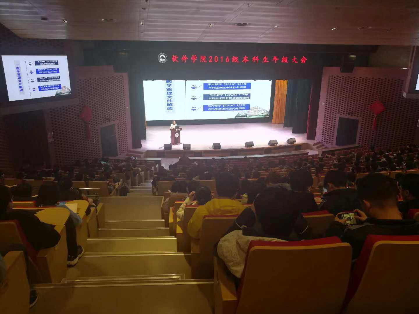 永利集团304am登录教学办和学生办协同合作,从12月8日起至21日,在浑南校区图书馆学术报告厅,分阶段分年级分别召开了在校生各年级全员参与的各年级大会,副院长程维和党委副书记兼副院长刘春风分别就教学管理和学生管理工作讲话,院长助理王瑞平、各专业系主任及教师、教学办本科教学相关人员、学生办各年级辅导员参加大会。
