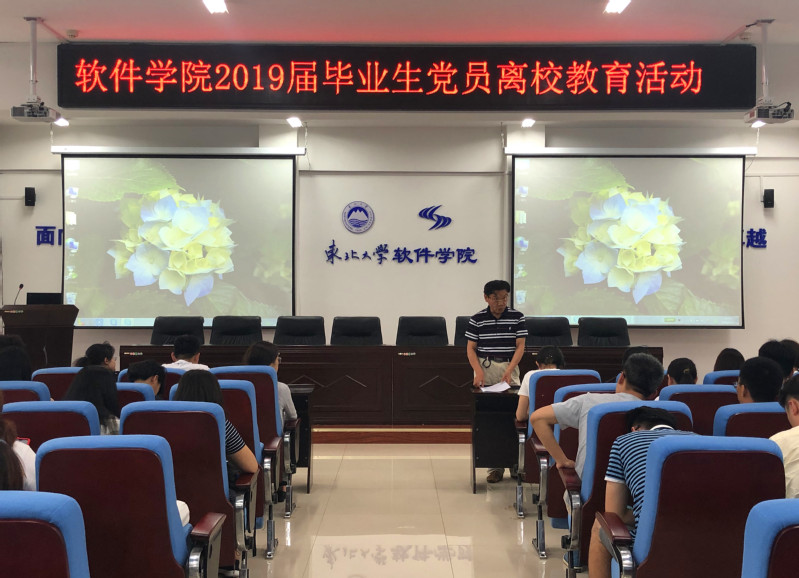 6月20日,永利集团304am登录在浑南校区信息学管B520室举行毕业生党员离校教育活动。学院党委副书记兼副院长刘春风、纪委办公室正科级纪检员王慧琦、相关工作人员及2019届全体毕业生党员参加活动。