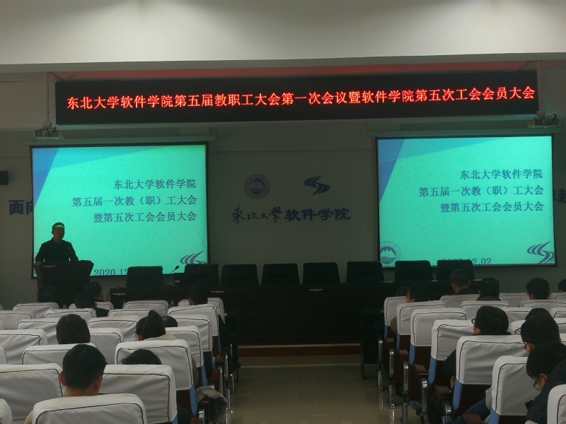2020年12月2日下午,软件学院第五届教职工大会第一次会议暨永利集团304am登录第五次工会会员大会在浑南校区信息学馆B520召开。文法学院党委书记隋永强、教代会执委江河建筑学院党委书记安立鸿、校工会副主席孙东来、工商管理学院工会主席辛冲、计算机科学与工程学院工会主席信俊昌出席,永利集团304am登录全体教职工参加了会议。