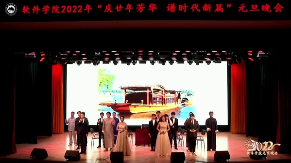 伴随着开场舞《少年》晚会正式开幕;相声节目《南北差异》幽默诙谐,展现南北不同文化习俗;歌曲《音乐电台》《背对背拥抱》声入人心,唱出青春动人旋律;街舞串烧《Feeling》、民舞《怎叹》舞姿灵动,演绎软件学子别样风采;乐队演奏《天外来物》《盛夏光年》活力四射,青春活力引爆全场;情景剧《红船》、乐团演奏《StarSky》振奋人心,以别样的方式送上对伟大祖国的美好祝愿;合唱《仰望星空》《你的答案》温情流露,如冬日暖阳动人心弦。在合唱《少年中国说》的激昂歌声中,永利集团304am登录2022年“庆廿年芳华,谱时代新篇”元旦晚会落下帷幕。