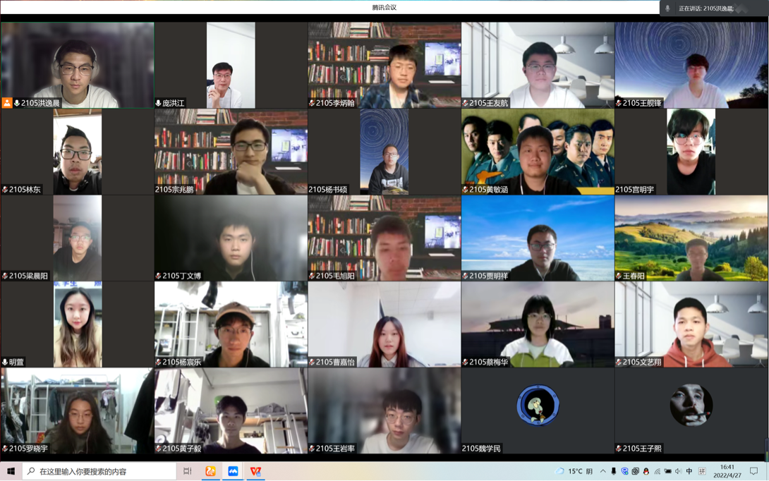 王裕民老师对接软件2001班,线上座谈中王老师聆听了班级发展情况和班集体建设“五育”工程进展,同学们聆听了王老师关于鼓励同学们投身科技报国的教诲。