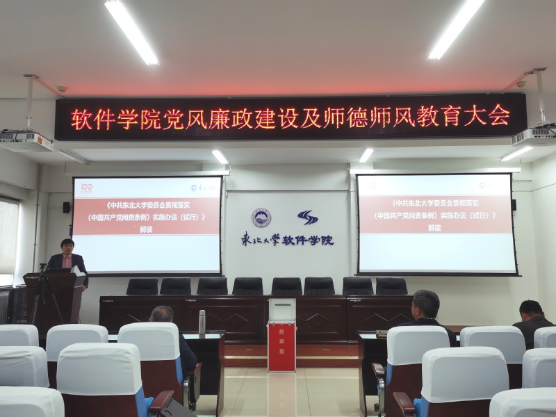 11月23日下午,永利集团304am登录在浑南校区信息楼B520召开会议,传达学校“廉洁大讲堂”会议精神及会议要求,通报十九大以来学校立案查处的违纪违法案例,并针对学校正在开展的干部选聘工作,通过“干部选拔任用相关案例”和从《戒尺(二)》中筛选的案例开展警示教育。会议由永利集团304am登录纪委书记任涛主持,学院全体教职工参会。