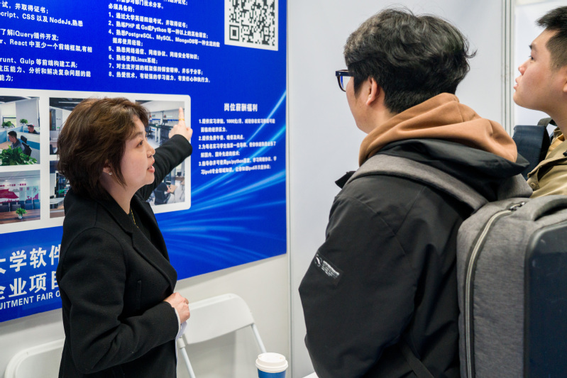 随后,双选会开始,企业向学生宣传介绍企业情况,学生投递简历与企业交流,场面火爆,气氛热烈。同学们纷纷表示,通过学院搭建的平台,有了更多和企业交流的机会,为未来走向高端就业提供了良好契机。企业也表示,通过实训项目能提前与学生有更多接触,增进了解,为企业吸纳需求人才提供了良好平台。