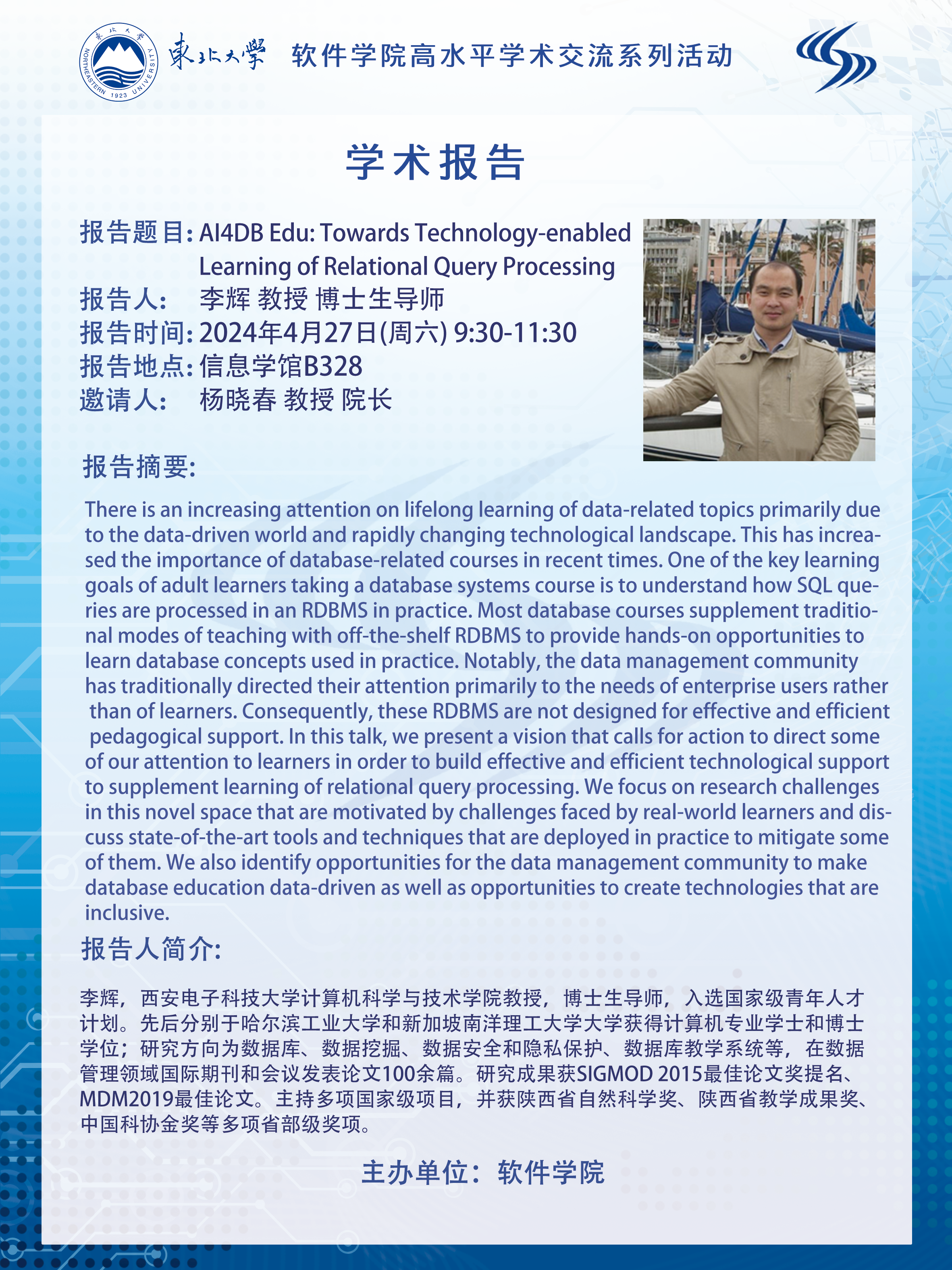 永利集团304am登录高水平学术交流系列活动——李辉教授、朱鎔研究员学术报告