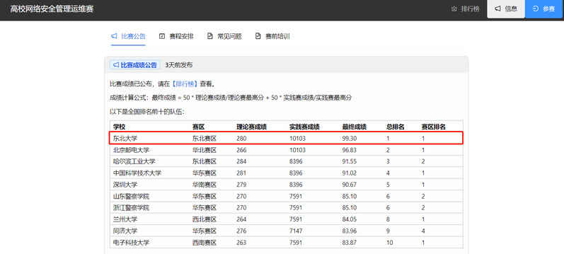 此次比赛体现了我校师生极高的网络安全理论水平与实践能力以及学校在信息安全专业人才培养方面的优秀成果。