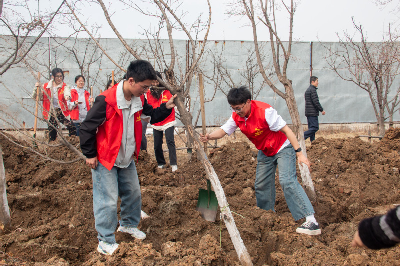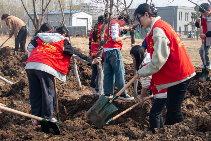 活动现场,师生跟随专业技术人员学习了树木移植的相关知识。随后,全体师生进入树木移植现场,在专业技术人员的指导下对移植后的树木进行扶植、培土。活动过程中,师生协作、共同参与,顺利地完成了既定的植树任务。师生在劳动中交流、在合作中成长,共同为营造美好校园贡献力量,进一步增强了对校园的责任感与归属感。